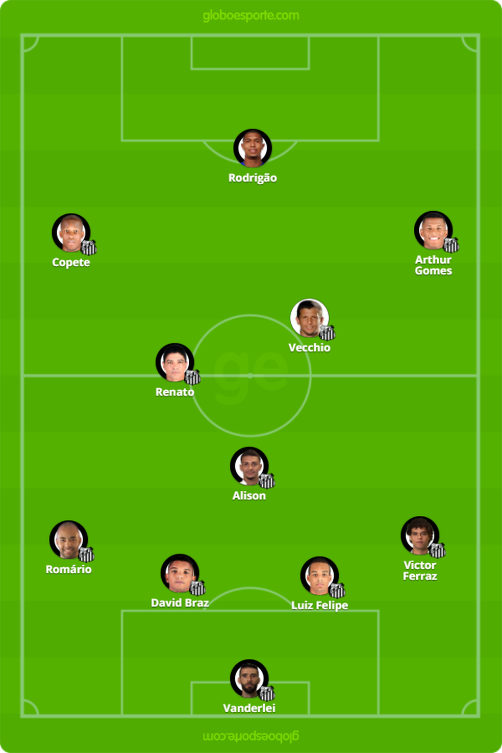 Nos lugares deles devem entrar Luiz Felipe e Arthur Gomes (autor de dois gols na rodada passada), respectivamente. O restante do time deve seguir o mesmo. Veja abaixo: