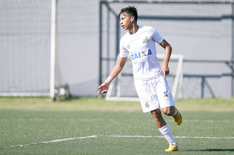Aos 15 anos, ele fez a sua estreia pela Copa São Paulo de Futebol Júnior — Foto: Pedro Azevedo/Santos FC