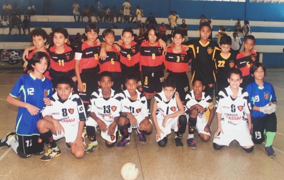 Kaio Jorge (camisa 10) num time do Sport ao lado dos filhos de Marcelinho Paraíba (6) e Magrão (12); este último hoje joga na base do São Paulo — Foto: Arquivo Pessoal