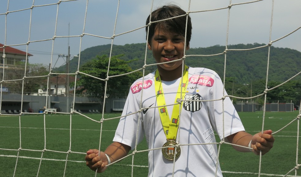 Kaio Jorge chegou no Santos com 11 anos e já começou a se destacar na base — Foto: Antonio Marcos
