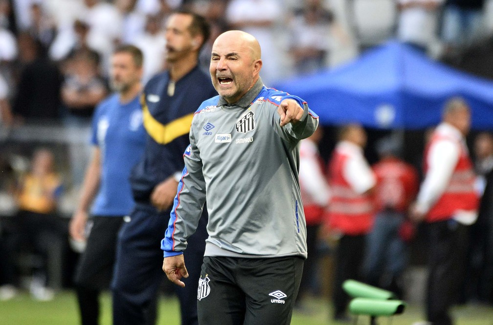 Sampaoli no clássico entre Corinthians e Santos — Foto: Marcos Ribolli
