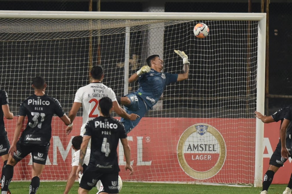 João Paulo faz linda defesa para evitar gol do Olimpia — Foto: Ivan Storti/Santos FC